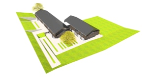 Hierzu wurde auf einem Anforderungsprofil mit Raumprogramm ein Musterentwurf entwickelt, der die vorgesehene Hanglage des Grundstücks optimal ausnutzt und sich sowohl in die Landschaft des bergischen Lands als auch in die bestehende Hofbebauung unauffällig einfügt.