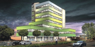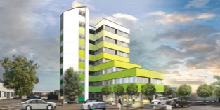Der bisher brachliegende Turm mit 6 Geschossen sollte revitalisiert werden. Zu diesem Zweck erfolgte über Visualisierungen und ein ausgearbeitetes Farbkonzept für Fassade und Innenräume eine Planungsgrundlage, die dem angejahrten Gebäude zu einem frischen Erscheinungsbild und attraktiveren Innenräumen verhalf.