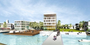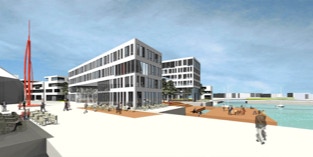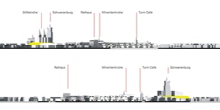 Die Minoritenkirche wird durch den Abriss des alten Rathauses betont und herausgestellt. Das Neue Rathaus selbst entsteht an der Uferkante zum Spoikanal mit erweiterter Wasserfläche.