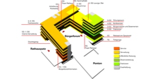 Die Neukonzeption der Unterstadt Kleve und eine Erneuerung des Rathauses wurden in drei Varianten mit anschließender Bürgerbefragung bearbeitet. Die hier bearbeitet Variante A sollte einen Neubau für das Rathaus vorsehen, während sich die anderen Varianten mit einer Kernsanierung oder kompletten Umgestaltung der Bestandsgebäude beschäftigten.